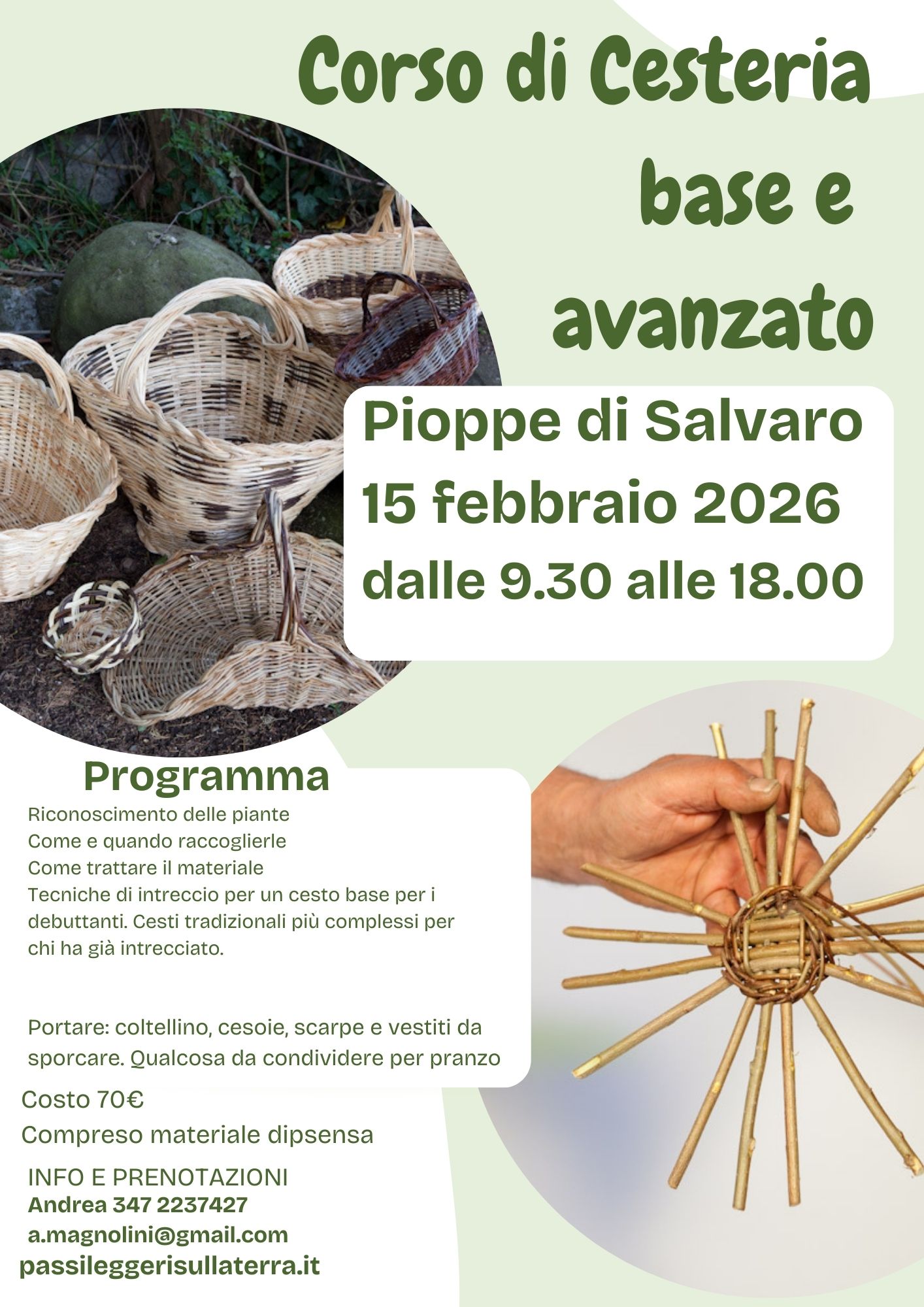 14 febbraio 2026 Corso di cesteria base ed avanzato